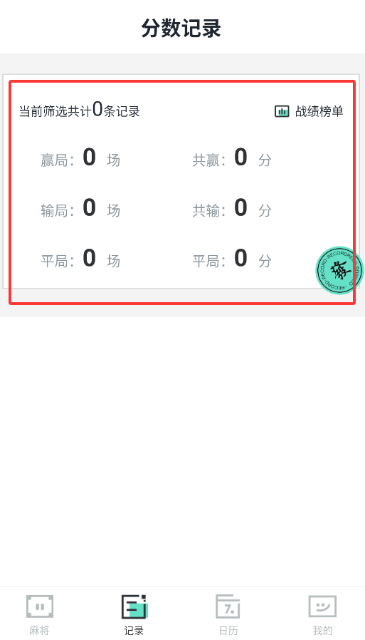 3、战绩统计页面详细展示历史对局数据,包括获胜次数、总得分和失利情况等关键信息。