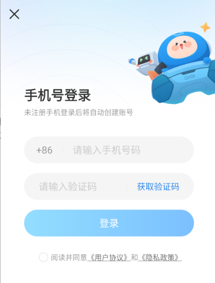 3、用户需要输入手机号,然后获得验证码后进行登录。