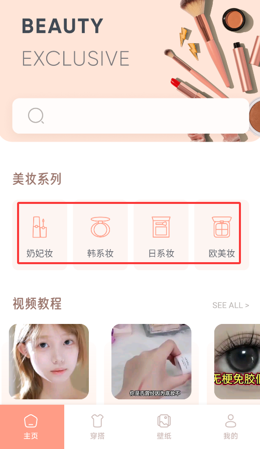 2、"美妆教程"提供奶妃妆、韩系妆等风格化教学,含步骤分解视频和产品推荐。