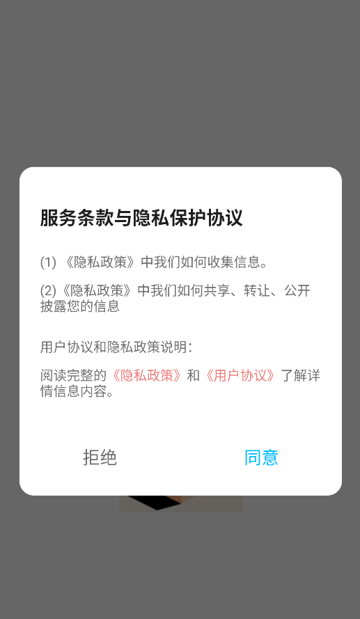 1、首次启动APP会显示用户协议弹窗,点击"同意"按钮后即可进入时尚搭配平台主界面。