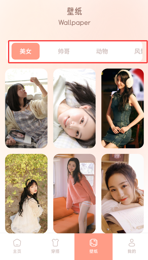 4、"壁纸库"按人物、风景等分类精选高清图片,支持一键设为手机壁纸。