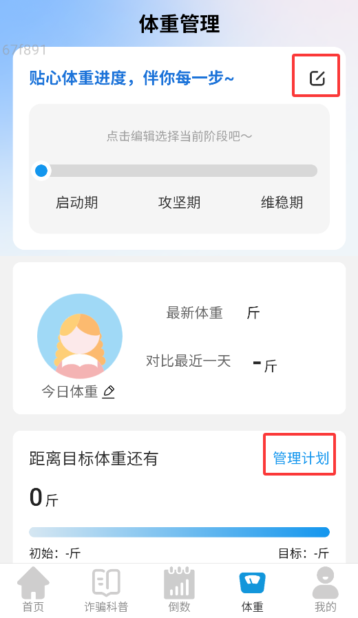 4、在"健康管理"页面,支持记录体重变化趋势,并制定个性化的体重管理计划。
