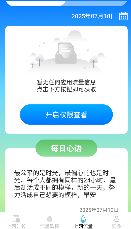 极速无忧上网这个极速无忧上网APP挺管用的,专门查手机流量。每天用了多少流量一目了然,还能设置月流量提醒,快用完时会自动通知。最实用的是能分析哪些App最费流量,方便调整使用习惯。流量总不够用的朋友可以试试,能省不少话费钱。