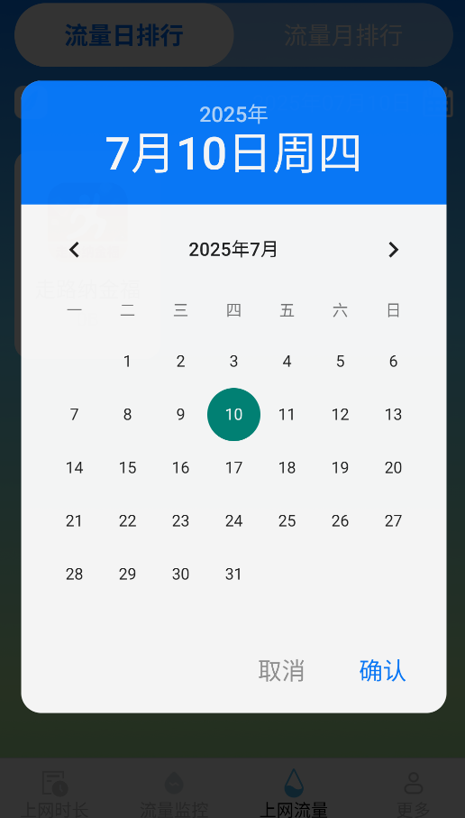 4、流量排行榜提供日/月消耗排名,点击日期可查看具体某天的流量使用明细,便于精准管理。