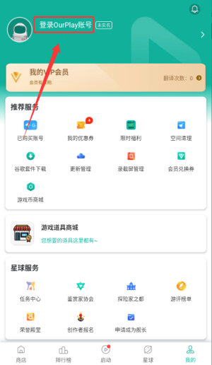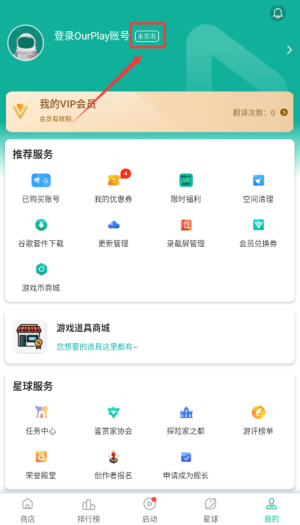 1、用户进入OurPlay安卓版,在右下角找到我的。