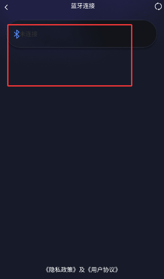 2、点击首页左上角蓝牙图标,进入设备搜索与配对界面。