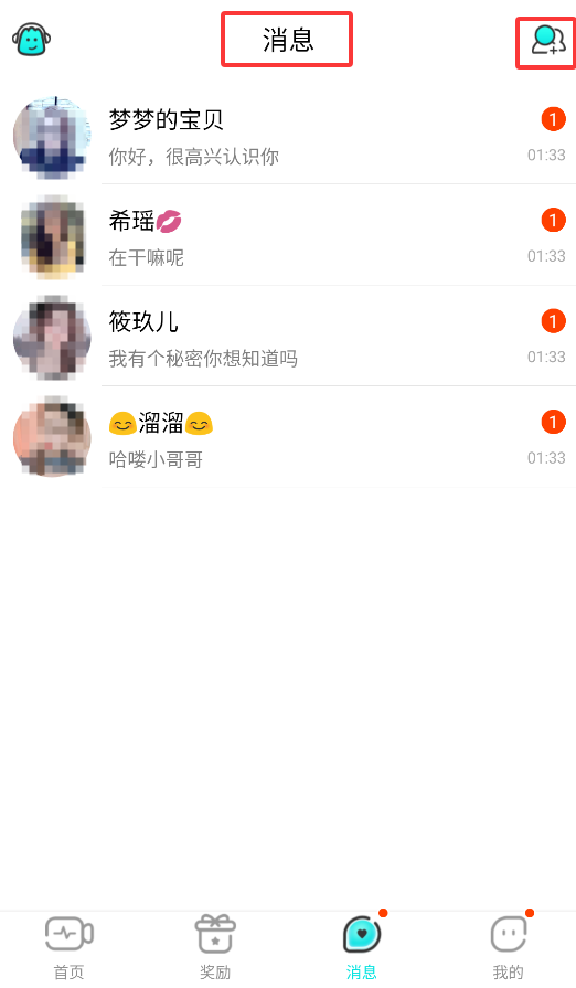 3、进入消息中心可以查看私信记录,点击右上角"+"号还能搜索添加新好友。