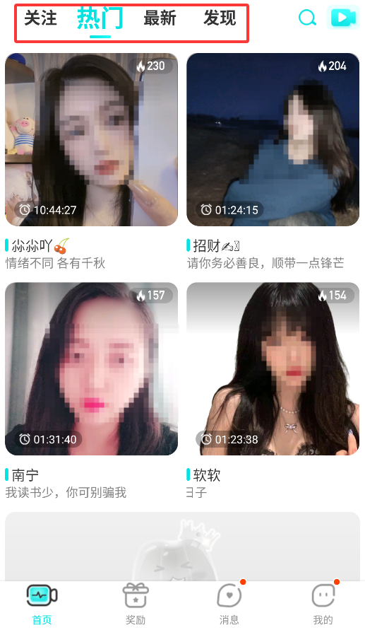 2、在直播大厅可以通过顶部导航栏切换"关注主播"、"热门直播"、"最新开播"等不同频道。