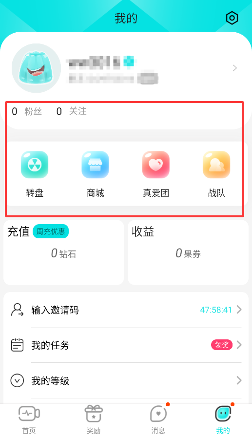 4、个人中心集中管理社交功能,包括粉丝互动、幸运抽奖、商城购物以及加入粉丝团等特色服务。