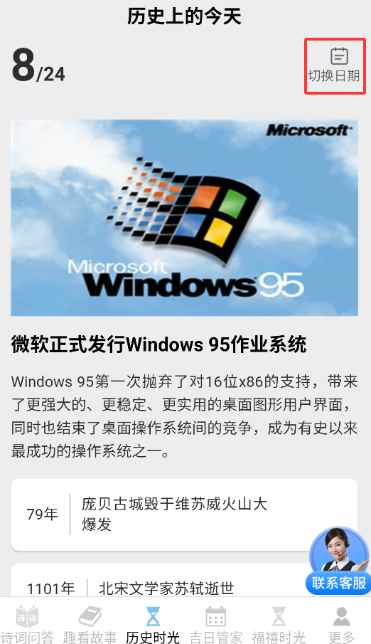 趣看时光卫士APP里诗词题库挺全,还能听历史故事。学诗词查吉日用这个!最实用的是黄历查询,结婚搬家这些大事能挑好日子。如果你平时都喜欢传统文化或者要办喜事的可以下载试试。不过吉日只是参考,而且具体安排还得结合实际。完全免费,下载去用着挺有趣。