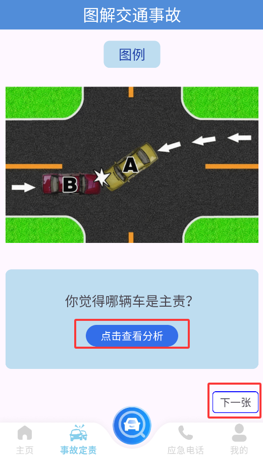 3、事故责任判定板块通过动态图解展示常见事故场景,支持逐帧分析责任划分逻辑。