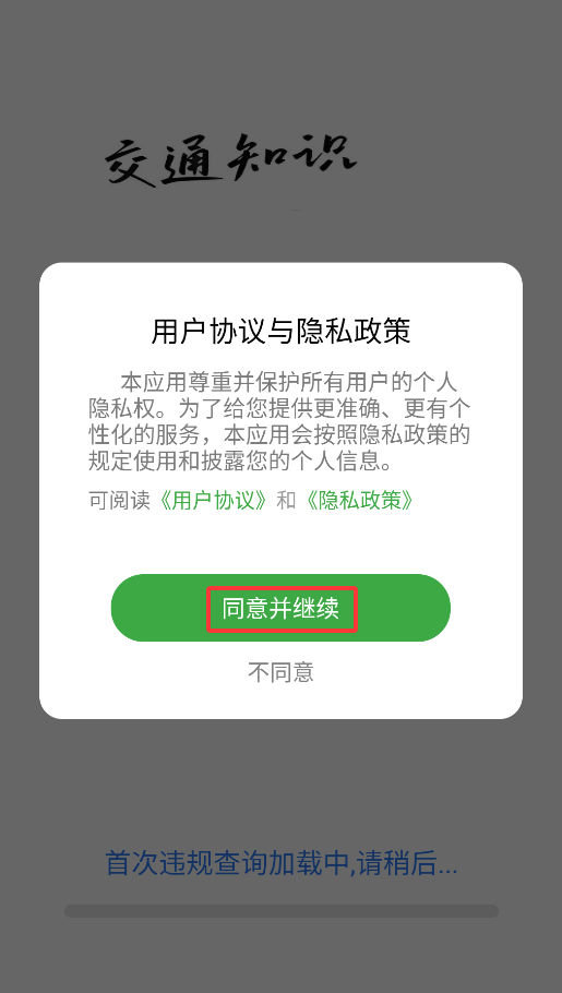 1、首次启动APP会弹出用户协议,点击"同意"后即可进入交通服务平台主界面。