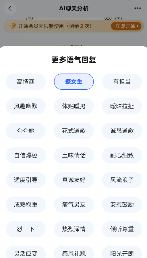 3、若对AI生成的回复不满意,可使用"深度分析"功能对聊天内容进行多维度情感和逻辑解析。