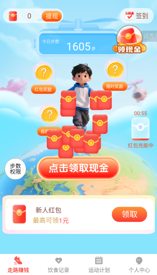 走路迎好运这个走路赚钱的APP有点意思,边走路边能攒红包。每天走的步数自动记下来,走到一定数量就能换钱,虽然不多但挺有动力的。还能顺手记个一日三餐,看看自己吃得健不健康。喜欢走路锻炼的朋友可以试试,反正平时也要走路,顺便赚点零花钱也不错。