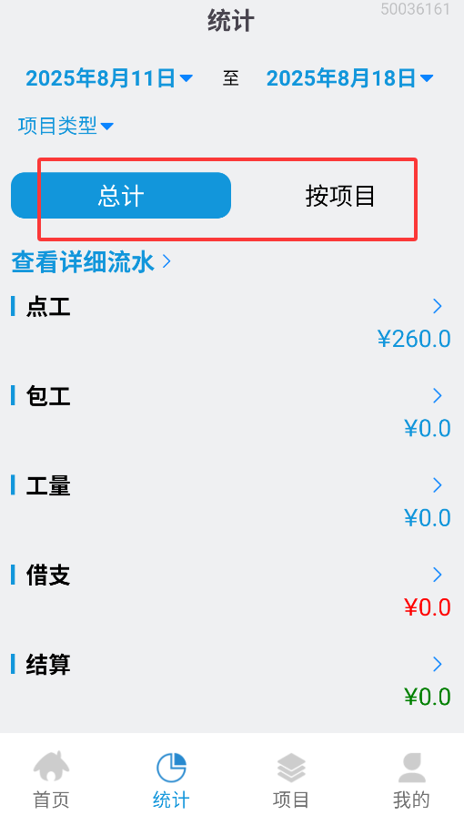 4、统计页面自动汇总所有数据,支持按项目、工人或时间段分类查看明细报表。