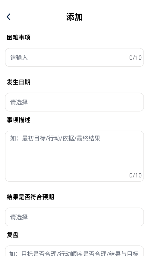 4、添加事项时需要填写具体困难描述、发生时间等详细信息,系统会自动生成时间轴式成长记录。
