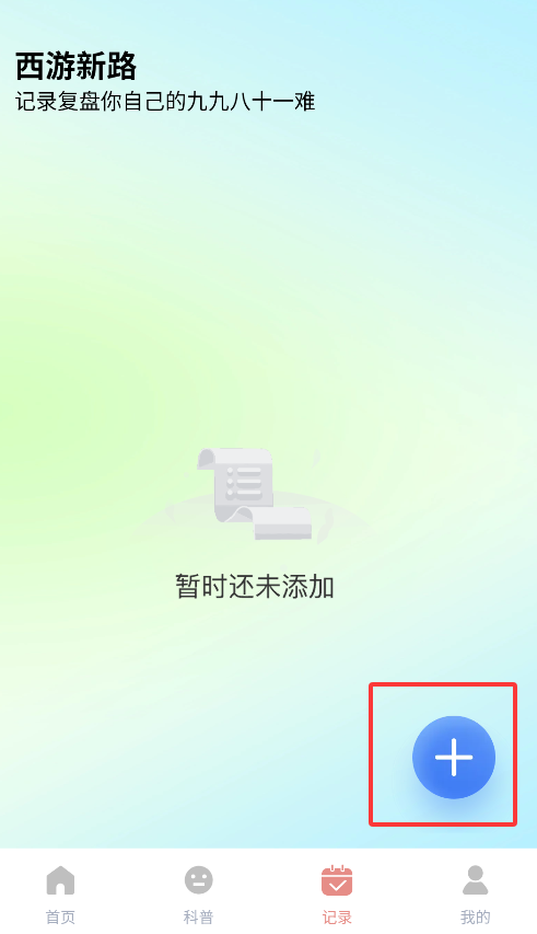3、通过"成长记录"功能,点击右下角"+"号按钮可新建记事条目。