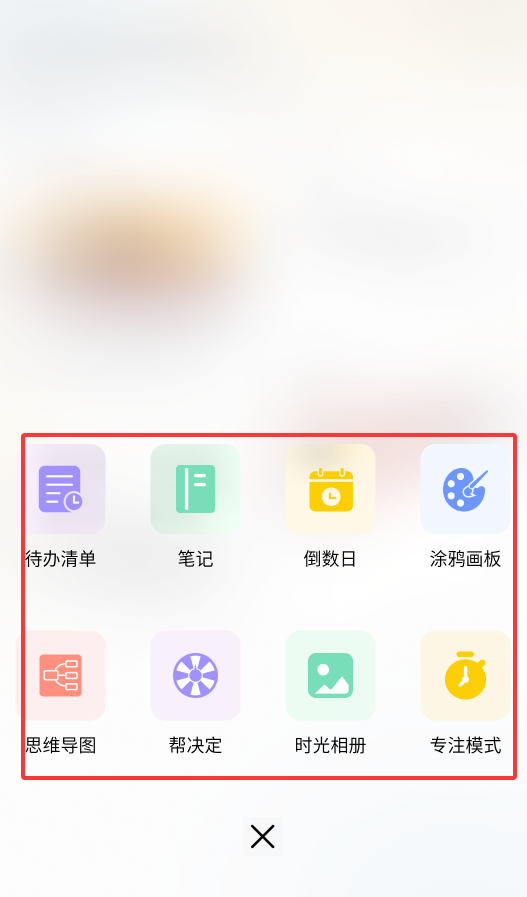 3、中央悬浮按钮可快速创建倒数日、涂鸦画板、决策助手及专注时钟等实用工具。