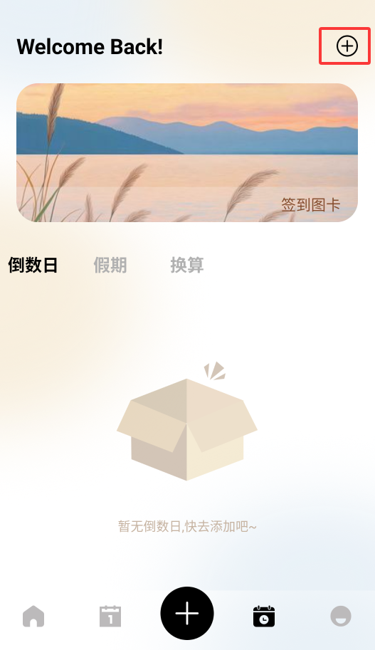 4、倒数日功能通过右上角添加按钮设置重要日期提醒,支持自定义背景和提前提醒。