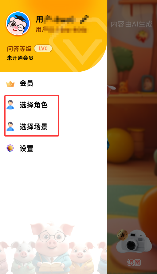 2、通过左上角菜单可进入"角色场景"设置,自由切换不同的对话模式和主题场景。