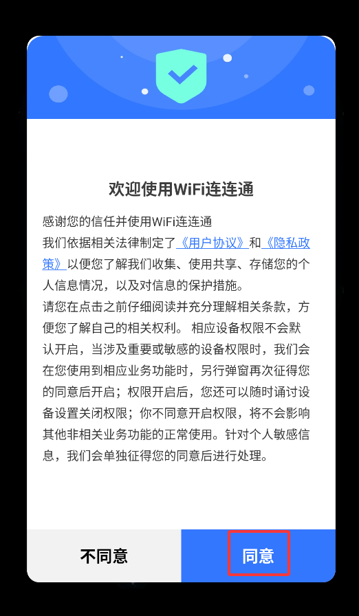 1、首次启动APP会显示用户协议和隐私政策,确认同意后即可进入主功能界面。