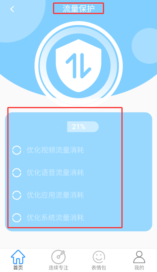 4、"流量优化"功能可智能管理视频、语音、应用及系统更新的数据消耗,提升流量使用效率。