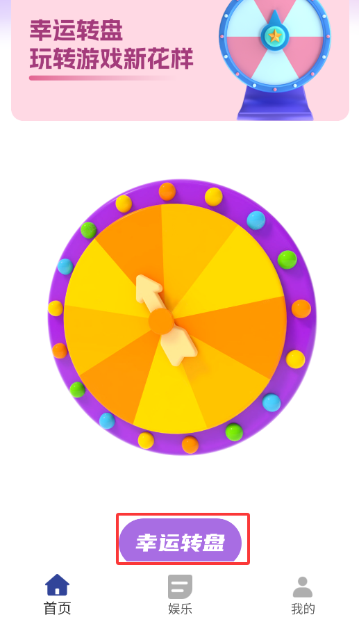 1、打开应用后直接选择“幸运转盘”功能入口,自定义或直接使用预设选项列表,点击按钮转动并查看随机抽取结果。