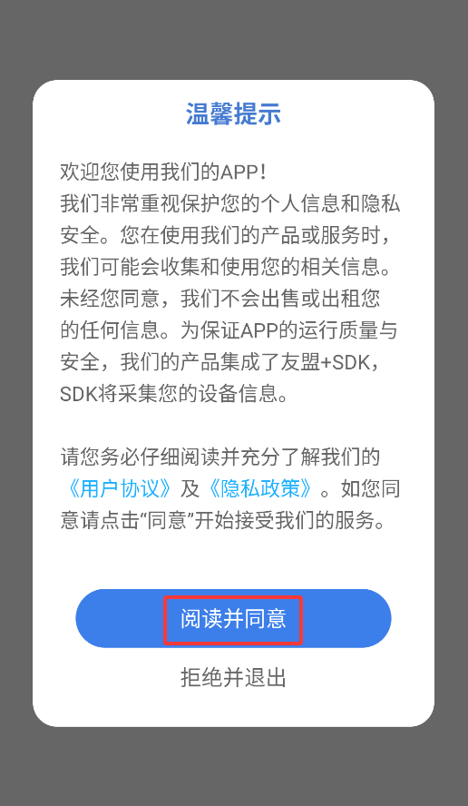 1、首次启动APP会弹出用户协议,点击"同意"后即可进入娱乐互动平台主界面。