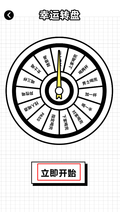 3、转盘游戏支持自定义惩罚内容,点击"立即开始"按钮即可随机抽取挑战项目。