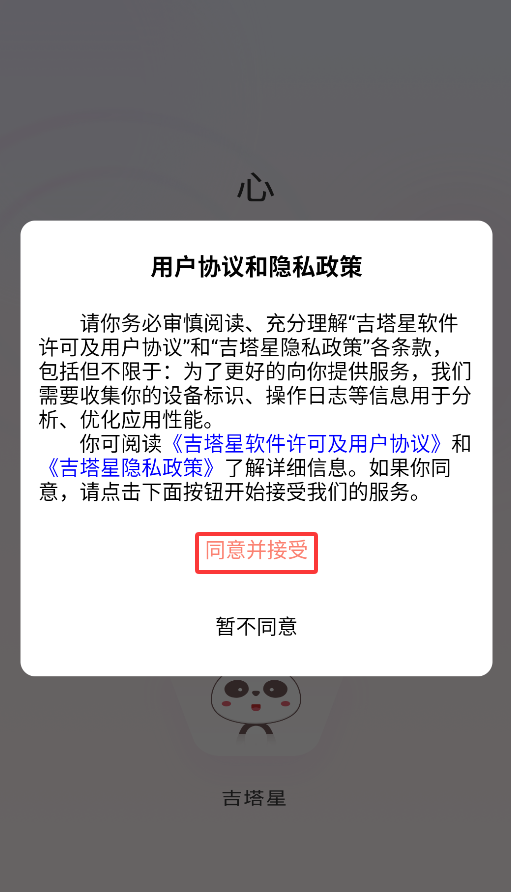 1、首次启动APP会弹出用户协议,点击"同意"后即可进入星座命理平台主界面。
