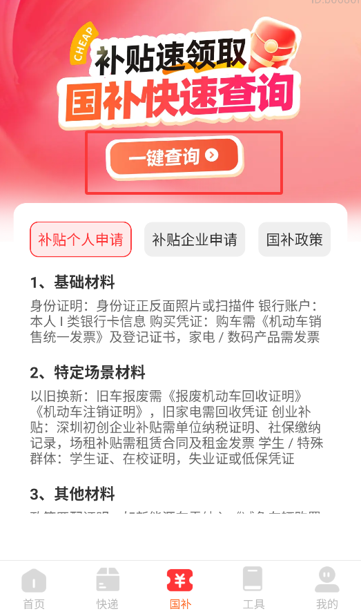 3、"国补专区"提供个人/企业补贴申请入口,一键查看最新补贴政策细则。