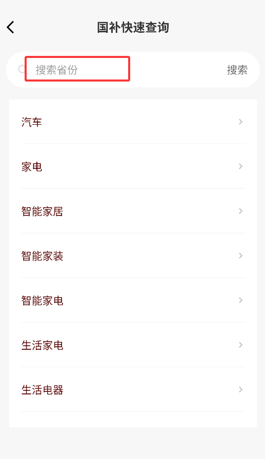 4、"快速查询"可按省份、商品类别(汽车/家电等)筛选可享受补贴的商品目录。