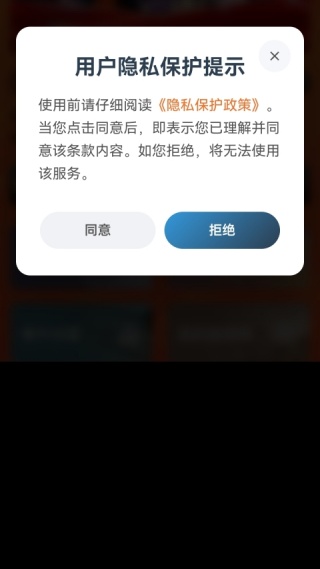 1、用户打开软件,首先会看到用户隐私保护提示,阅读没有问题,直接点击“同意”。
