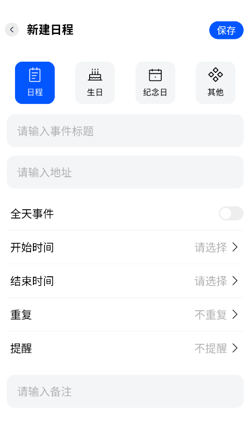 4、日程提醒模块支持创建重要日期提醒,包括生日、纪念日等个性化设置。