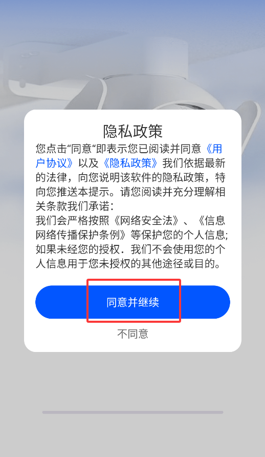1、首次启动应用会显示用户协议界面,完成确认后进入智能家居管理平台。