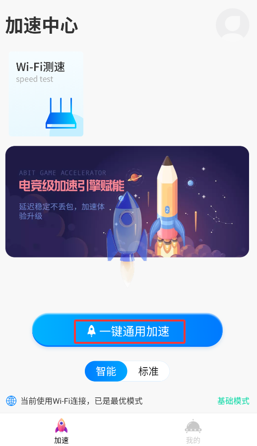 2、在加速页面直接点击"一键加速",系统会自动优化当前网络连接速度。