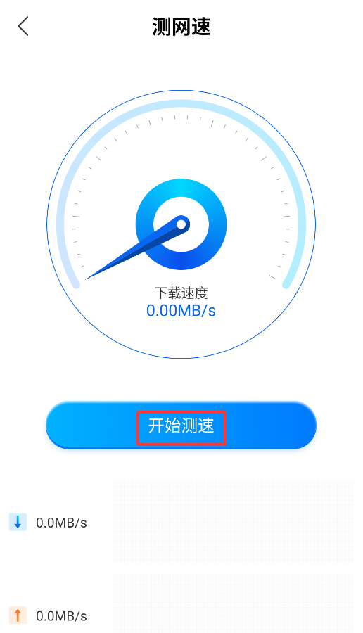 3、测速页面会实时显示当前下载/上传速度,通过动态曲线图直观反映网络波动情况变化趋势走向。