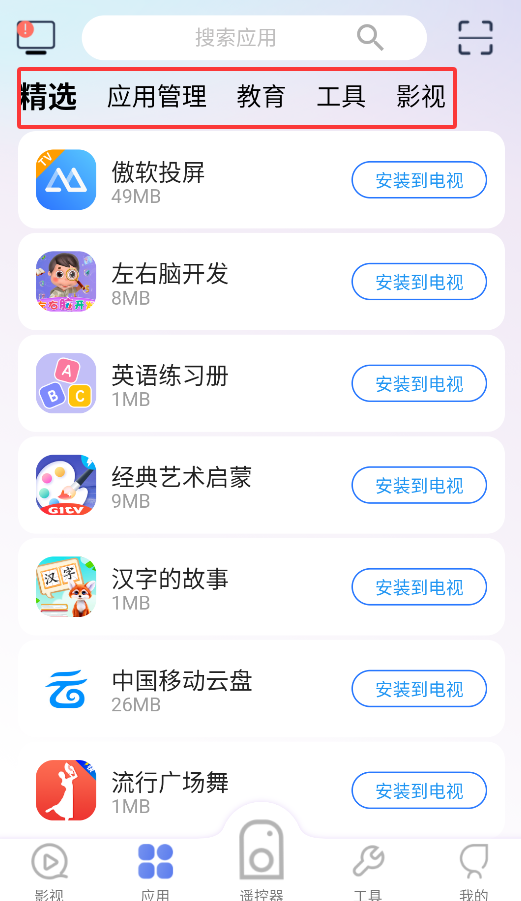 1、在应用商店下载安装后,通过WiFi网络将移动设备与智能电视接入同一局域网环境。