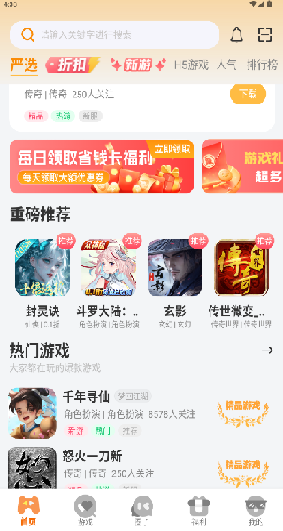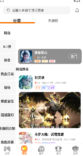2、游戏分类细致清晰,通过热门、新游、类型、专题等分类,可迅速定位想玩的游戏,节省查找时间;
