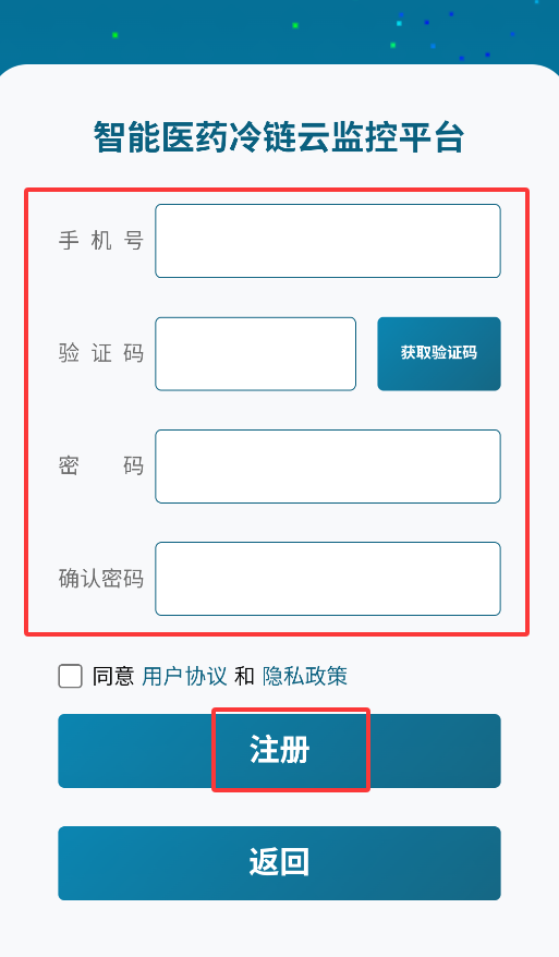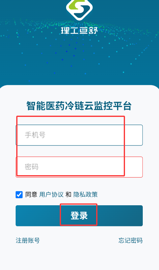 4、返回登录页面,使用注册手机号和密码即可成功登录亘冷云平台。