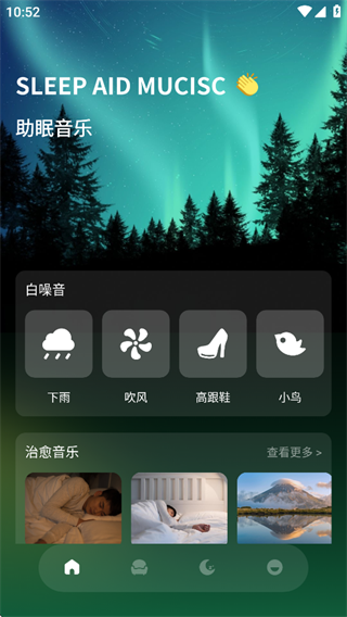 1、打开app,首页就有很多的白噪音可以播放,还能提供超多治愈音乐。
