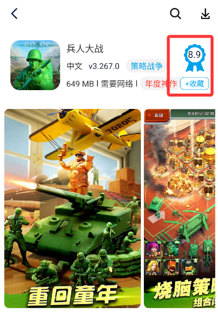 3、进入到收藏游戏的详情页,点击下图框中内容,可以选择收藏或者取消收藏游戏。
