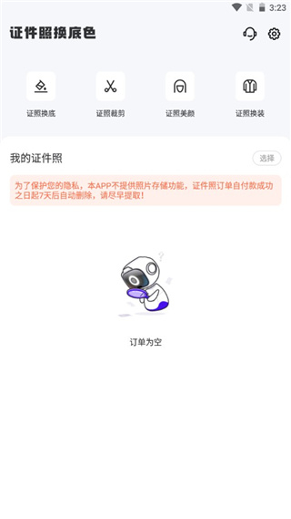 1、立即下载证件照换底色app至手机安装,立即进入页面开始使用