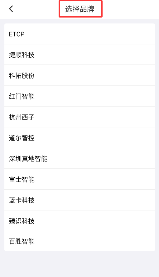 2、主页面设有"品牌查询"功能入口,点击可浏览支持的所有道闸品牌列表。