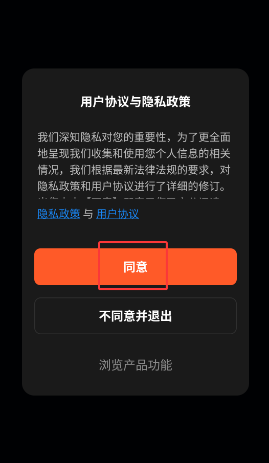 1、首次启动APP会弹出用户协议,点击"同意"后进入业主登录页面。