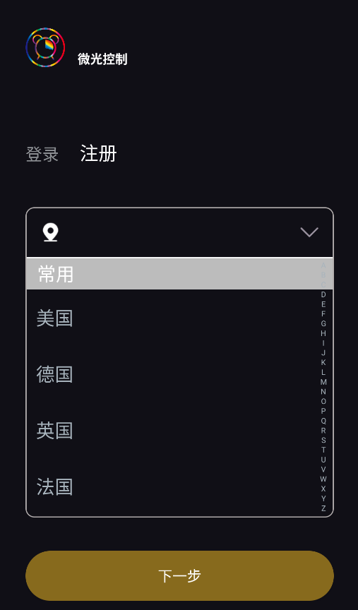 2、注册时需要选择所在国家/地区,系统会根据选择提供相应的服务器支持。