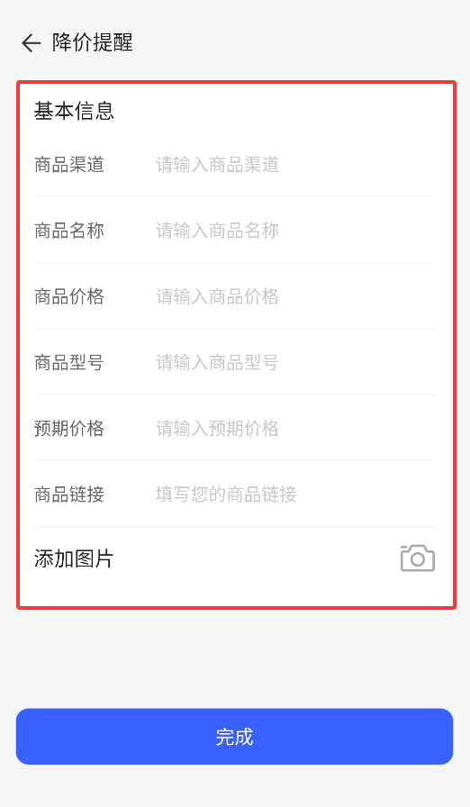 3、降价提醒功能支持输入商品名称、型号、购买链接及目标价位,触发降价时自动推送通知。