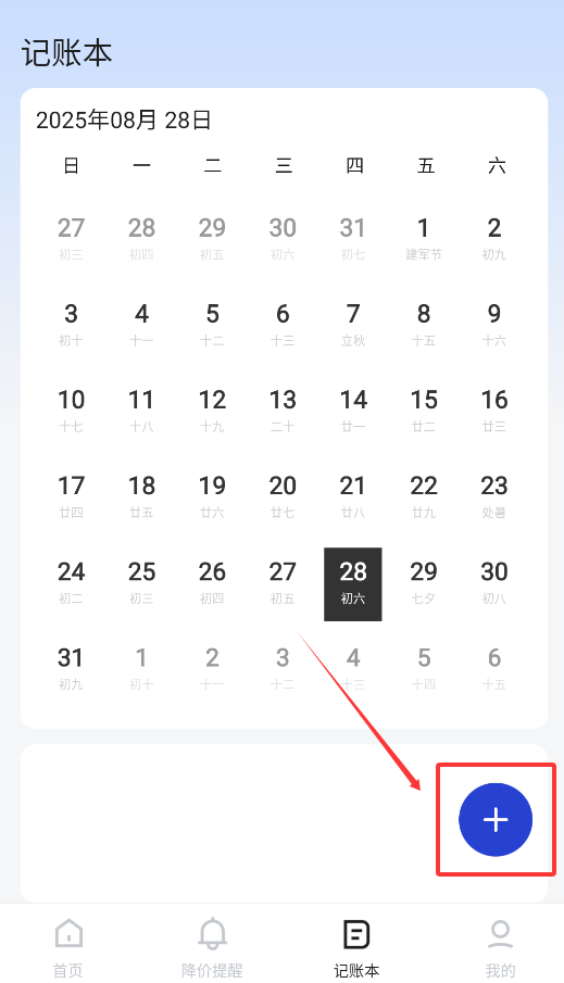 4、记账本支持手动记录消费明细(点击"+"号添加),自动生成价格对比分析和支出报表。