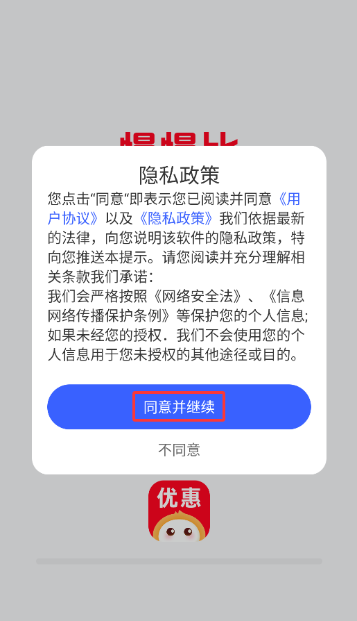 1、首次启动APP会弹出用户协议,点击"同意"后即可进入比价管理平台主界面。