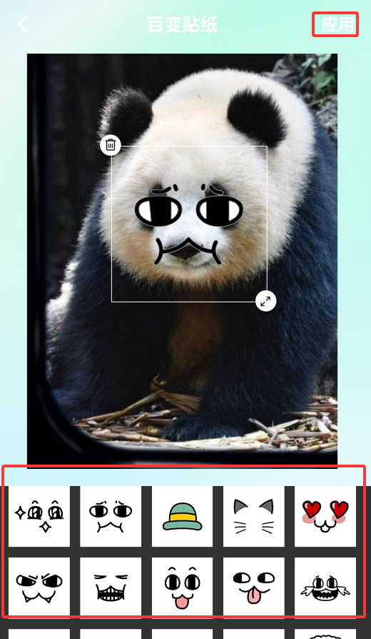 3、选择心仪的装饰贴纸后,点击应用按钮即可将作品保存至本地相册。